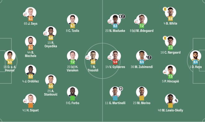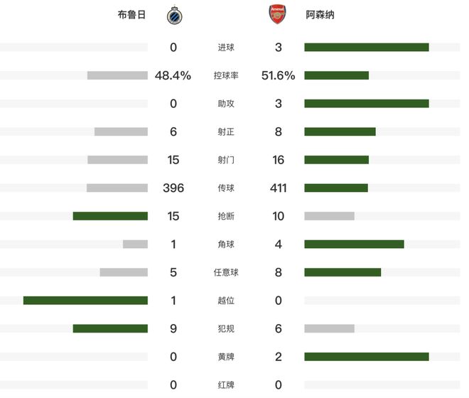 北京时间12月11日,2025-26赛季欧冠联赛阶段第6轮,阿森纳客场3-0击败比利时球队布鲁日,是唯一一支6战全胜的球队,高居榜首!马杜埃凯梅开二度,马丁内利连续5场欧冠破门创造历史,热苏斯伤愈复出击中门框。比赛看点1.马杜埃凯为阿森纳打进的前3粒进球都来自于欧战,俱乐部历史首人。2.马丁内利成为阿森纳队史第一位连续5场欧冠取得进球的球员。第4分钟,厄德高禁区外左脚远射被扑出。第21分钟,因卡皮耶禁区内迎球打门,皮球击中立柱。第22分钟,马丁内利左路传中,哲凯赖什头球顶偏。第25分钟,苏维门迪传球,马杜埃凯强突推进,左脚轰世界波远射,1-0!阿森纳取得领先。第44分钟,斯坦科维奇突入禁区右脚打门被扑出。第47分钟,苏维门迪左路传中,马杜埃凯头球梅开二度,2-0!第56分钟,斯凯利传球,马丁内利右脚远射轰入世界波,3-0!第62分钟,热苏斯换下哲凯赖什,伤愈复出。第76分钟,梅耶禁区左侧小角度射门稍稍打偏。第79分钟,热苏斯禁区内右脚兜射击中横梁!第83分钟,16岁小将萨尔蒙替补登场,上演职业生涯首秀,也是欧冠生涯首秀。球员评分数据统计出场阵容阿森纳(433):1-拉亚;4-怀特(83’89-萨尔蒙),16-诺尔高,5-因卡皮耶(63’33-卡拉菲奥里),45-斯凯利;8-厄德高(71’22-恩瓦内里),36-苏维门迪,23-梅里诺;25-马杜埃凯(71’7-萨卡),14-哲凯赖什(62’9-热苏斯),11-马丁内利布鲁日(4231):16-范登赫维尔;41-西奎特,4-奥多涅兹,44-梅切勒,65-塞斯;15-奥涅迪卡,25-斯坦科维奇;9-福布斯,20-瓦纳肯,8-佐利斯;7-特雷索尔迪
