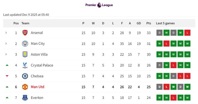 英超第6位,与第5名切尔西同分,但净胜球少6个。虽然本场大胜,但如果想要实现冲击欧冠的目标,红魔的攻防仍需大幅度改善。这场取胜,主要因为主队太差!