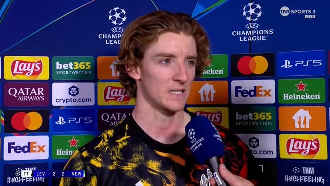 纽卡斯尔联在欧冠联赛阶段第6轮客场2-2与勒沃库森打平。赛后,安东尼-戈登接受了TNT体育的采访。比赛是如何被绝平的“我不知道,但说实话,这种情况发生得太多了。“前30分钟我们踢得非常糟糕,但我们反应不错,下半场开局踢得很好。主教练在中场休息时给了我们一点狠话,我们也做出了回应。“防守方面我们必须更紧凑,因为我们在比赛后段丢了太多球。我不知道是不是因为疲劳,但归根结底是心态问题。我们必须在这种比赛中坚持住,因为顶级球队就是这么做的。”谈进球的刘易斯-米利“他是一名出色的球员,无论是替补上场还是首发,每次表现都很好。今年他的身体和心理都有很大进步,我真的为他感到高兴。”【上咪咕独家看英超
